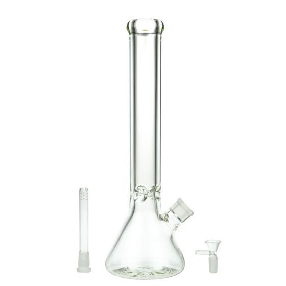Standing at a height of 38 cm / 15 inches, this bong features a stable beaker base design that allows for enhanced water capacity, resulting in better filtration and smoother hits. The 18.8mm ground joint ensures a secure connection, while the inside-cut 18.8mm > 14.5mm slitted diffuser downstem disperses the smoke for optimal diffusion.