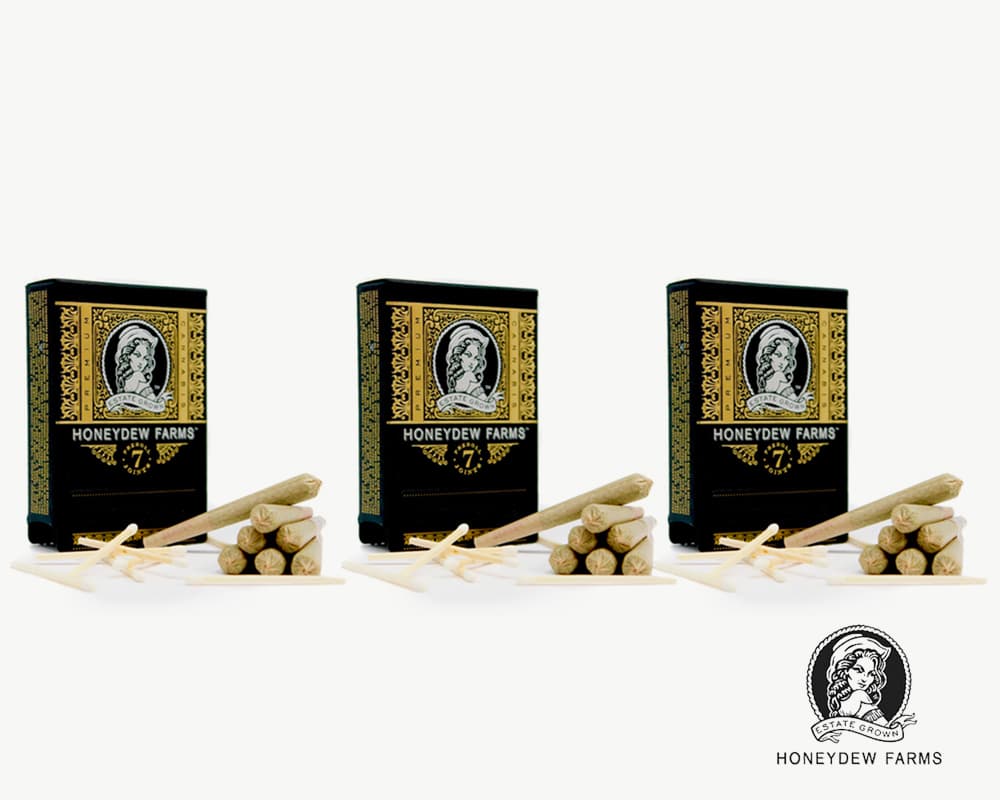 Delve into a selection of 3 strains from Honeydew Farms’ Pre-rolls 7 packs. (3 X 7 Pre-roll packs = 21 Pre-rolls) This sampler offers an exquisite assortment of Honeydew Farms’ exceptional Pre-rolls. The sampler comes prepackaged, and the strains cannot be changed or substituted. If one of the strains is out of stock at the time of order, it will be substituted with another strain from the same brand, potentially resulting in receiving two packs of one strain.